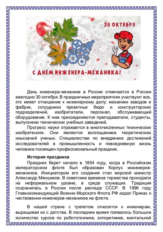 30 Октября День Механика