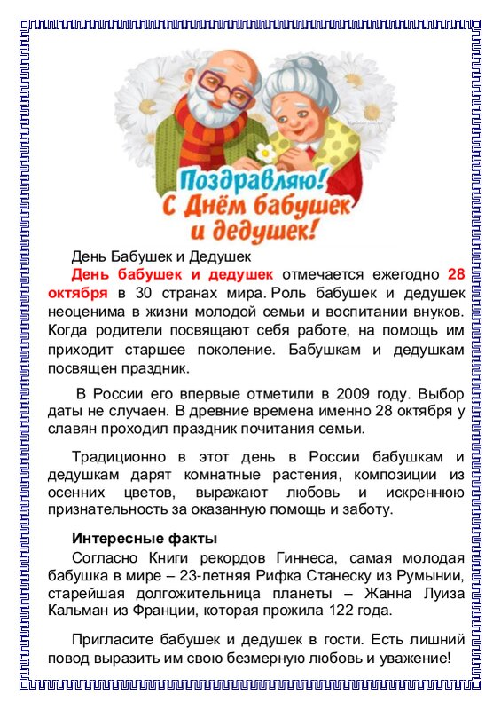28 Октября День Бабушек И Дедушек