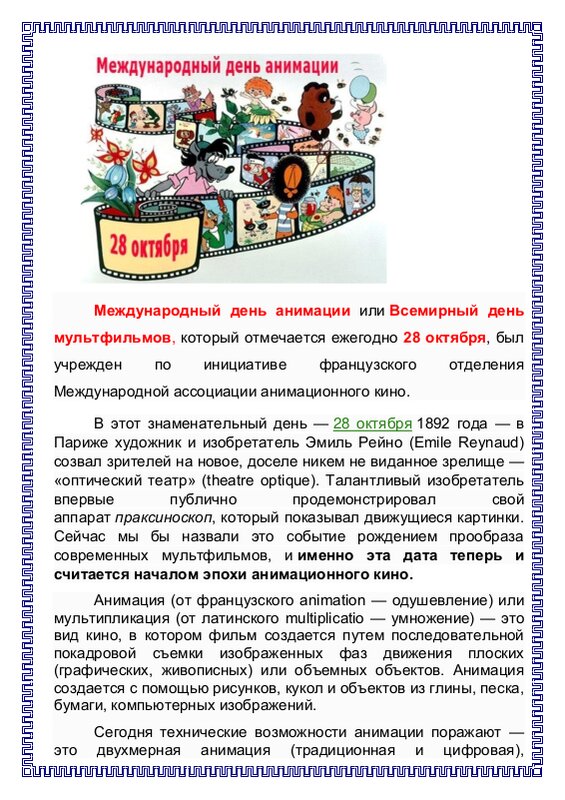 28 Октября День Анимации