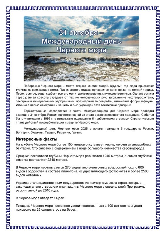 31 Октября День Черного Моря